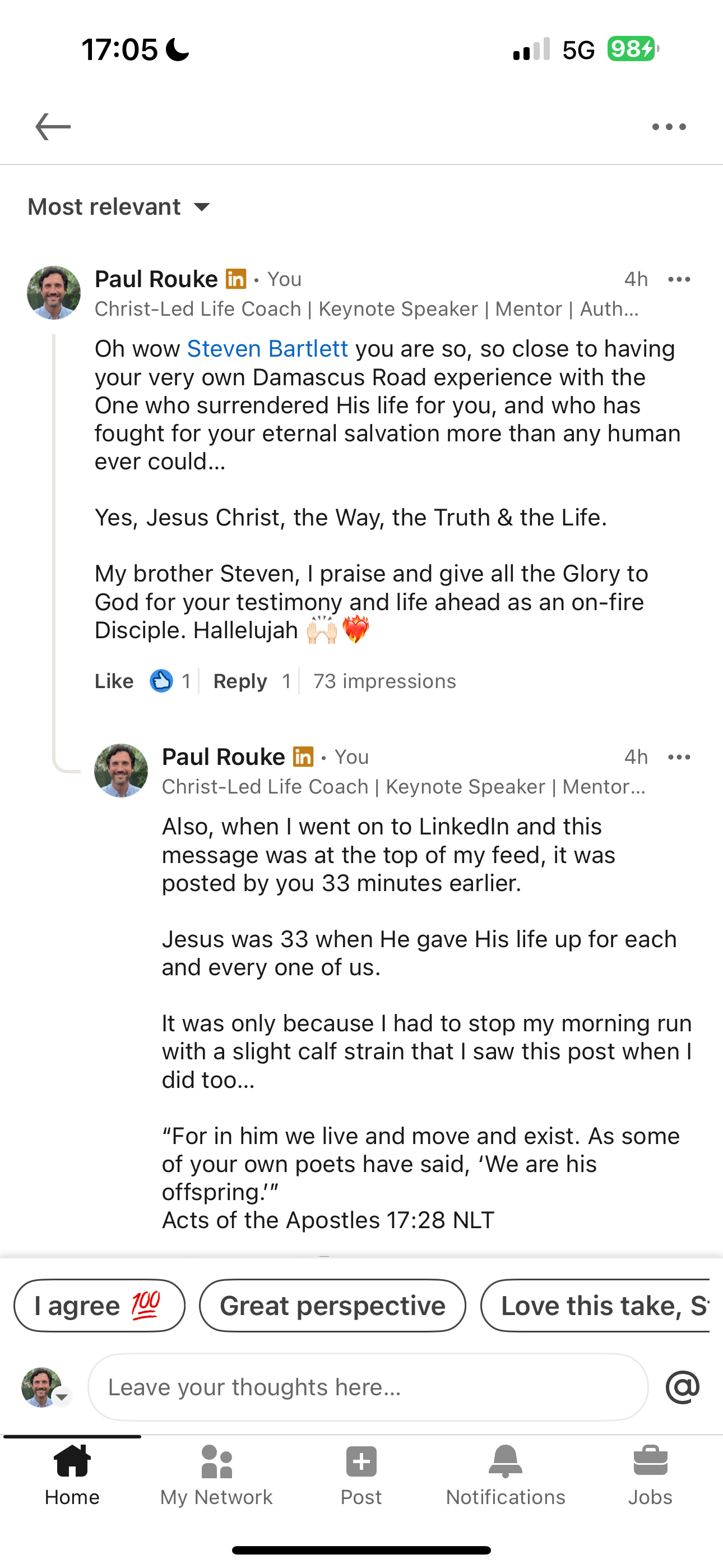 I then added a reply on my comment, with me having seen that it was 33 minutes earlier that Steven had posted this message (God’s timing is ALWAYS perfect!).